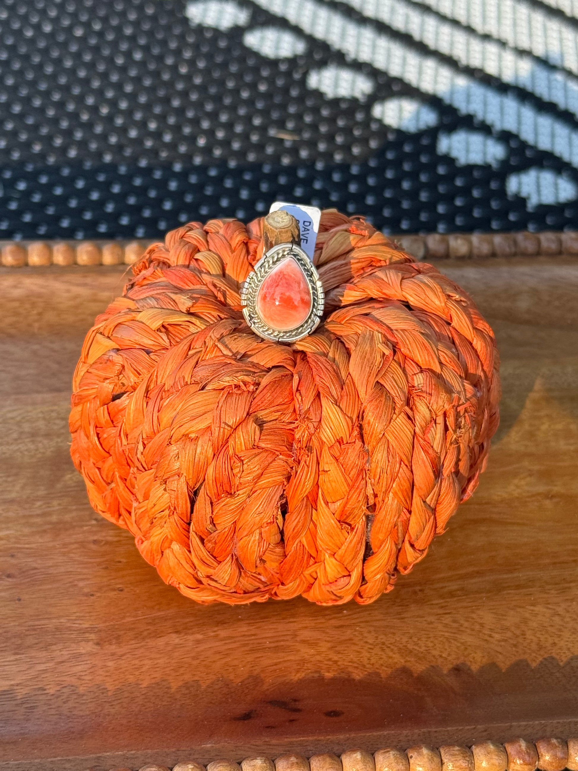 Handcrafted by Navajo Native American silversmith Dave Skeets, The Desert Flame Ring features a striking spiny oyster stone set in a classic southwestern bezel. The rich orange and coral tones of the stone glow against the detailed silver-work, creating a look that’s both bold and timeless. A beautiful piece that pairs perfectly with turquoise and/or other spiny oyster pieces.