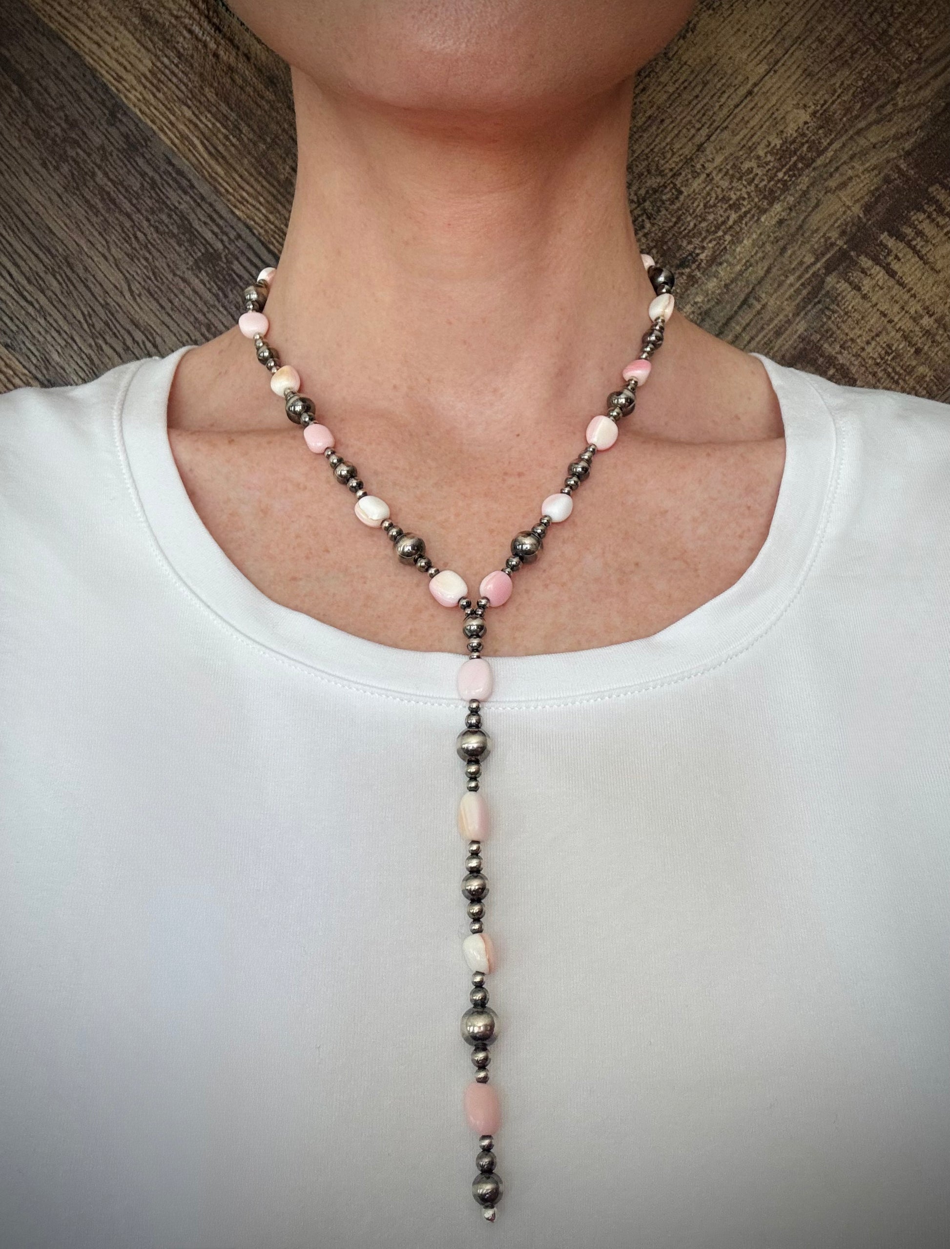 The Dusty Rose Lariat Strand blends soft pink conch shell beads with sterling silver pearls of various sizes (3-8mm) in a laid-back lariat style strand. It’s an easy standout, whether you’re leaning into the coastal cowgirl aesthetic, wanting something different from your usual stack, or if you’re simply just a lover of all things pink. This strand is feminine with a little grit and perfect gals who want a softer look, but still crave a little edge.