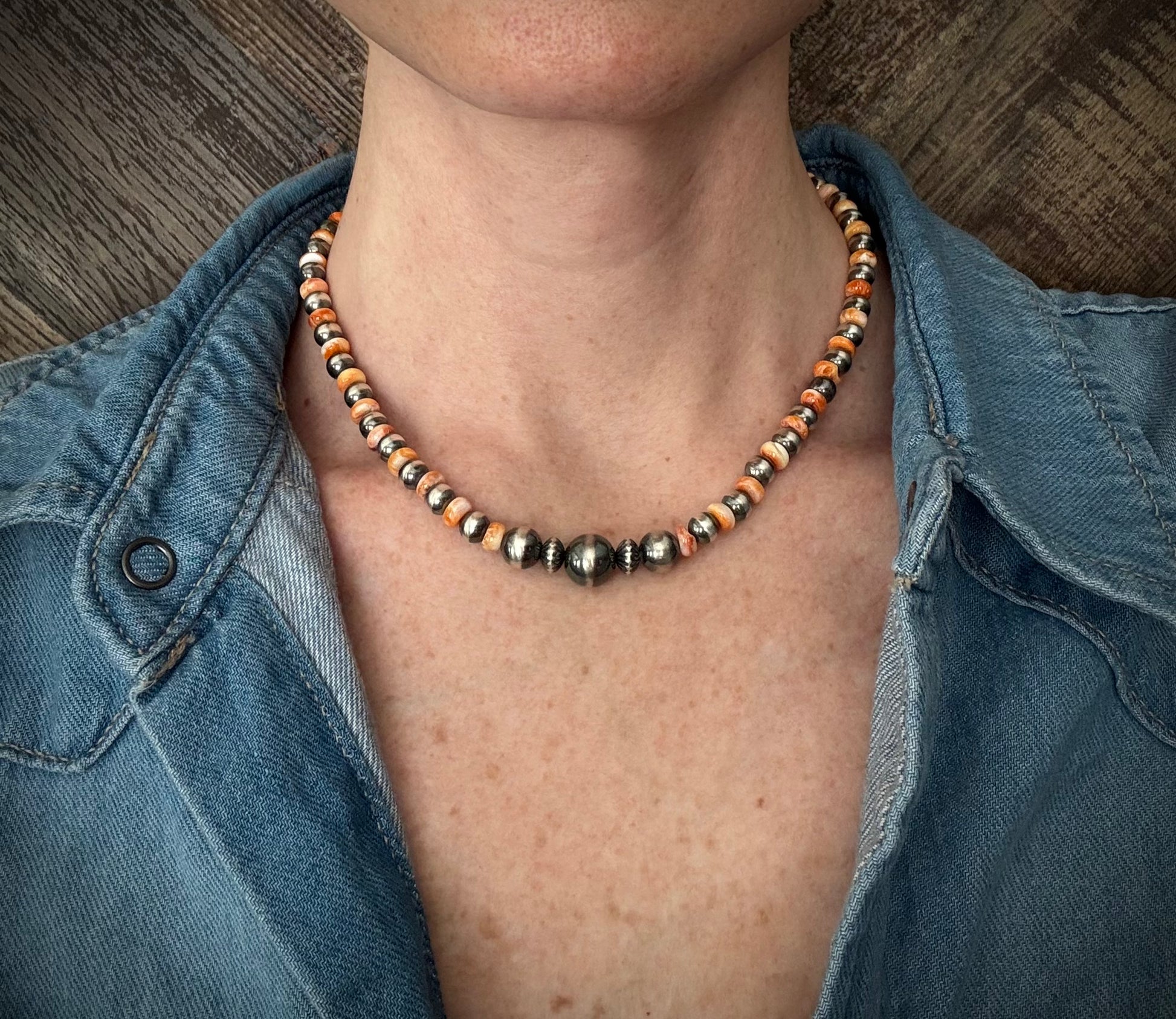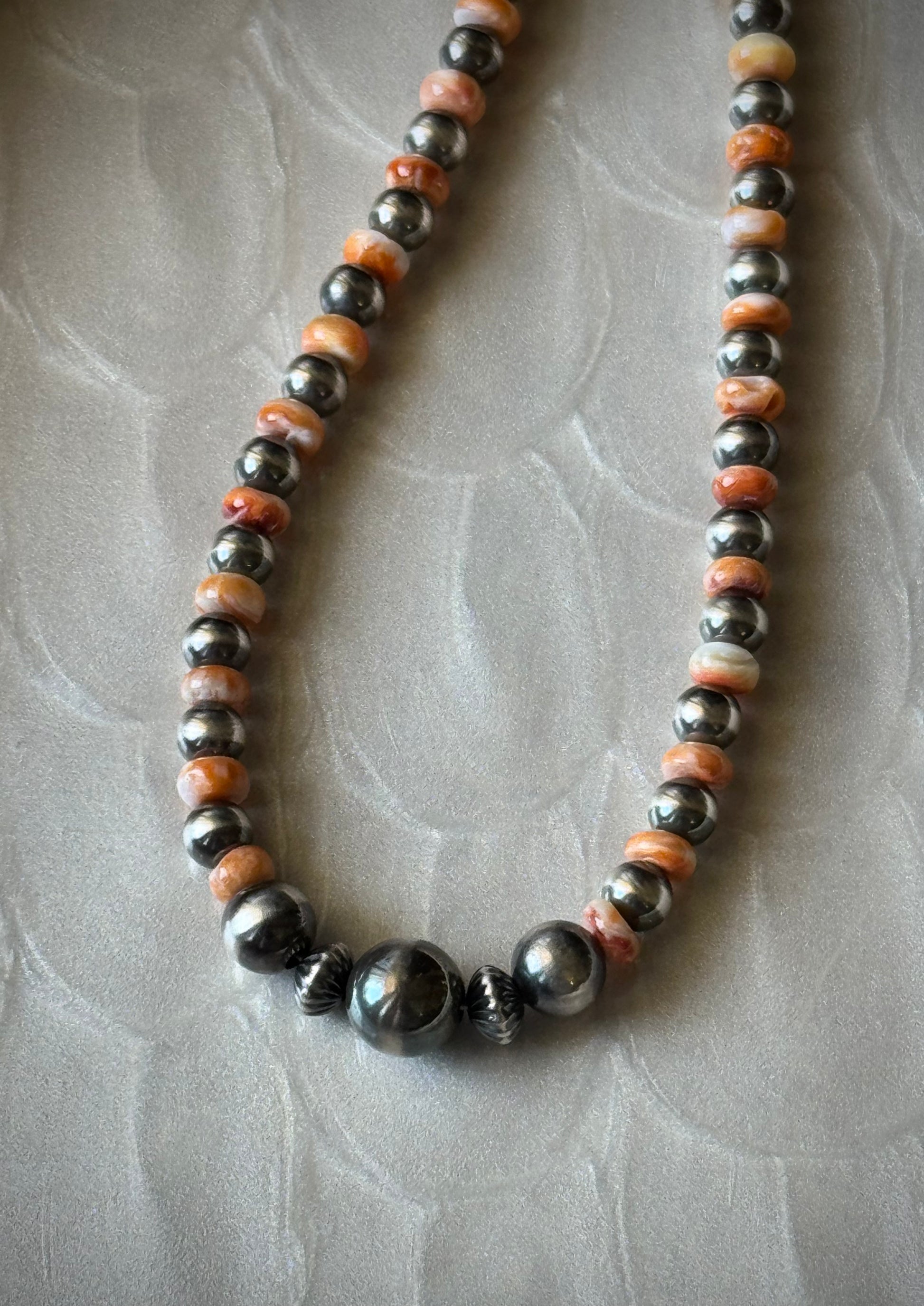 The Phoenix Strand rises with fiery elegance, combining the vibrant glow of orange spiny oyster shell beads with the effortless shine of sterling silver beads. Like the mythical firebird, this strand embodies transformation taking your current stack from blah to booming with color! The strand uses approximately 6mm orange spiny oyster shell rondelle beads, 6-10mm sterling silver round beads and a few corrugated saucer style beads. This is a striking stacker piece perfect for anyone who craves jewelry with a fiery soul.