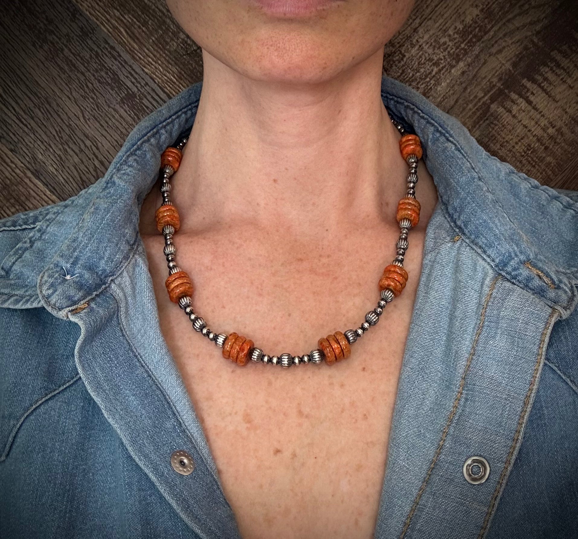 The Sterling Sun Strand brings warmth and edge to your stack. Featuring genuine apple coral button beads mixed with 4mm sterling silver round beads and 6mm sterling silver corrugated round beads, it’s a perfect mix of funky and refined. Bring a little fall color to your stack with this strand that feels both bold and beautifully balanced.