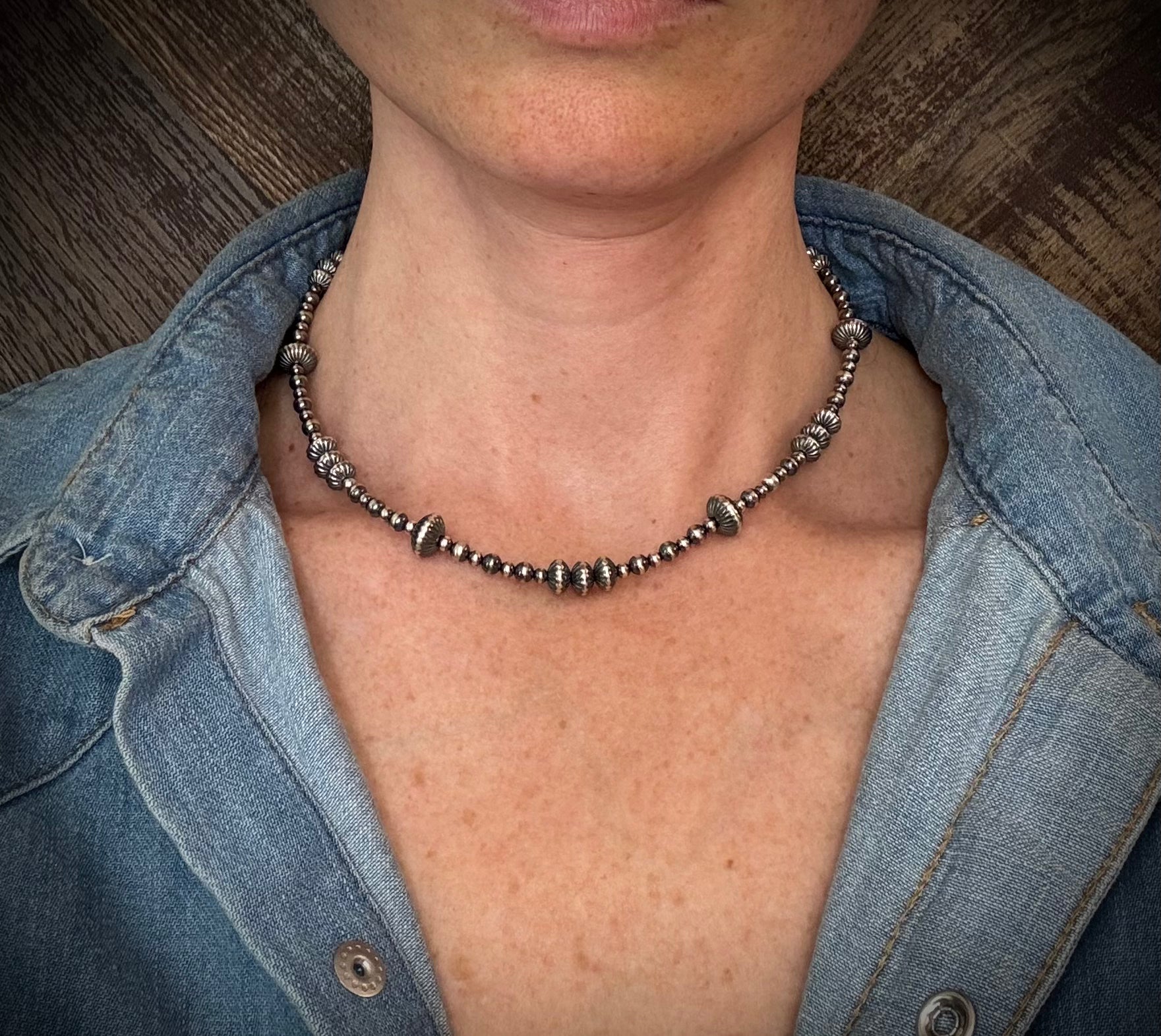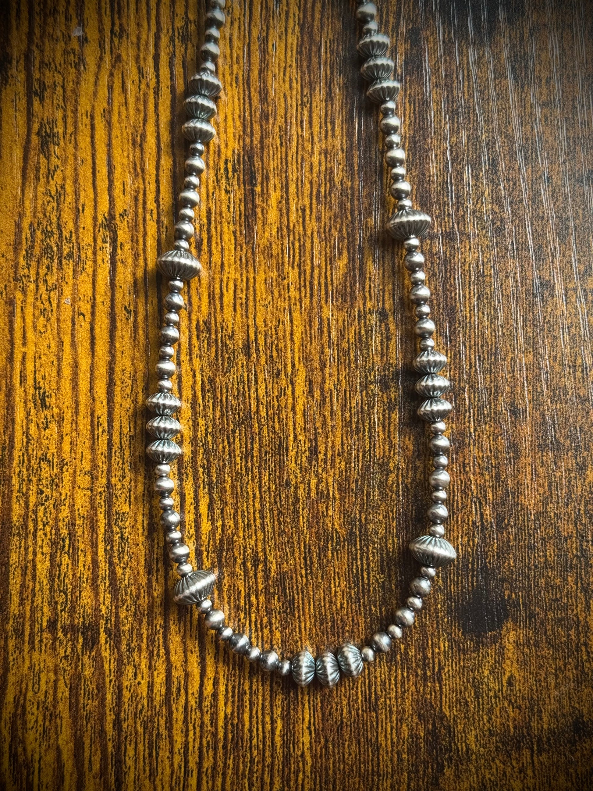 The Wagon Train Strand is all sterling silver and all style. With a mix of 8mm and 6mm corrugated saucer beads and smaller 3mm and 4mm round beads, this strand will be the stand out in your necklace stack. It’s a versatile piece that complements any and every stack. It is easy to wear and timeless to own.